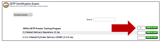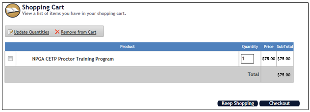 You will be taken to the Purchase page. Click the "Add to Cart" button beside the NPGA CETP PROCTOR TRAINING PROGRAM course.