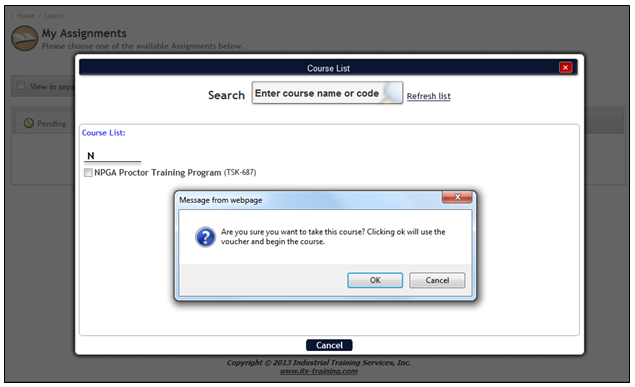 After entering the VOUCHER number, you will see this screen. If you are sure you want to take this course, click the OK button