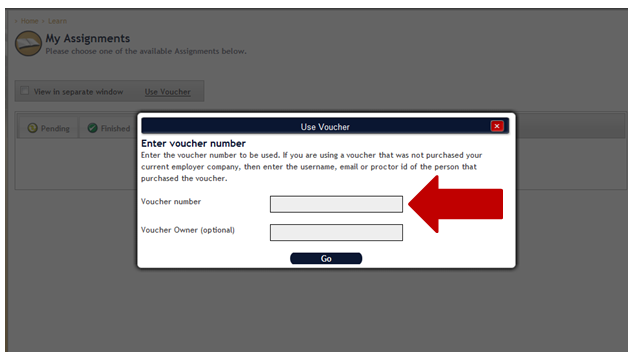 Enter the VOUCHER number that your Administrator gave you into the appropriate box.